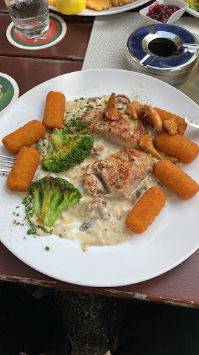 Read moreDas war leider nichts. Die Lage WÄRE super : schattiger Innenhof, ohne Straße mit Spielmöglichkeiten für Kinder. Riesenpotenzial! ABER der Spielplatz ist ziemlich lieblos und in die Jahre gekommen mit teilweise kaputtem Holz. Das Essen steht nicht im Preis/Leistungsverhältnis. Für die Kinder gab es Käsespätzle, die eher Rahmspätzle gewürzt mit Brühe waren und auch viel zu teuer. Mein Teufelstoast war okay, allerdings extrem lieblos angerichtet und es schwamm in der Soße. Auch wollte ich halb Pommes/halb Salat. Bekam dann (nach zweimaliger Nachfrage, ob das denn ginge) beides (natürlich auch zu bezahlen). Der Service war bemüht und auch freundlich, allerdings auch etwas überfordert, obwohl kaum etwas los war. Das Essen meines Mannes war in Ordnung, allerdings auch für unser Empfinden zu teuer, für das was man bekommt. Lecker und groß war der Beilagensalat. Zu allem Überfluss bescherten die Käsespätzle meiner Tochter und mir eine Nacht und den Folgetag Erbrechen und Übelkeit. Leider nicht...