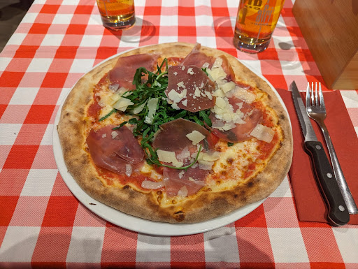 Read moreHaben mit 6 Personen dort gespeist. Wir wurden freundlich empfangen und zu Tisch geleitet. Nach dem setzten wurden die Karten auf den Tisch gelegt und wir konnten uns durch die Speisekarte lesen. Getränke kamen zeitnah an den Tisch. Die Bedienung war nicht sehr freundlich und bei wenig Arbeit angelehnt an der Theke abgestützt mit der Hand am Kopf. Absolutes No-Go. Bei der Frage ob man die Pizza einpacken kann, wurde eine Aluminium-Folie auf den fettigen Teller lieblos hingelegt. Nicht sehr professionell.Ein Kellner war umso freundlicher und sehr zuvorkommend. Die Antipasti-Vorspeisen Platte war ein absoluter Flop. Ein Haufen Oliven lieblos in die Mitte geschmissen, Salat außen dran gelegt. War nicht genießbar. Die verschiedenen Pizzen die wir gegessen hatten, waren gut. Schöner und leckerer hoher Rand. Leider bei einer Pizza (Pizza Gamabaretti) sehr ölig. Die Pasta war Okey aber leider geschmacklich ist es nicht wert nochmal dort zu essen. Zum Ambiente, bei zwei zusammen geschobenen Tischen unterschiedliche Tischdecken (eine sehr ausgeblichen) . Sah nicht gut aus. Leider stand ein 3 m hoher Weihnachtsmann in der Ecke der einfach dort nichts zu suchen hat.