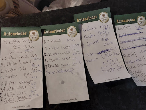 Die Getränkepreise sind nicht ersichtlich und scheinen sehr angehoben worden zu sein. Leider ist alles schwer nachvollziehbar, da es keine vernünftige Rechnung, sondern nur einen Papierzettel für die Bedienung gibt, in der die Preise draufgekritzelt werden. Kartenzahlung ist bei dieser undurchsichtigen Preisgestaltung selbstverständlich auch nicht möglich.