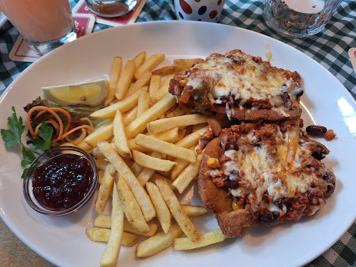 Forgot to make pictures because we just dove in to our meal after the long drive. But we had some nice wiener schnitzels. Thats exactly what we came for. The penno pollo is ok, but had more of a curry flavour. Nice weizen pints from tap, nice terras, friendly and attentive waiters. And the restaurant is at a very ydillic square. What's not to love!!