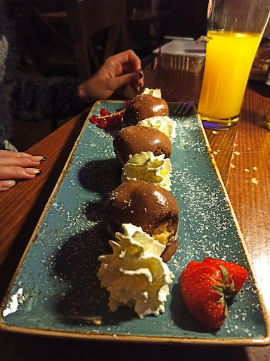 Die Portionen sind groß und lecker. Angefangen mit einem Insalata Pomodoro, weiter mit einem super herzhaften Steinpilzrisotto und danach noch selbst zubereitete Profiteroles.