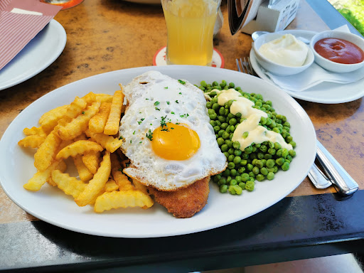 Read moreLeider ist auch hier der Fachkräftemangel zu spüren. Service ist auf Zack und freundlich,Getränke kommen schnell. Essen geht gar nicht! Ich komme selbst aus der Gastronomie und würde mich schämen so ein Essen zu schicken. Schnitzel definitiv nicht selbstgemacht und das bei einem stolzen Preis von 18,90€(Tiefkühl oder vorgefertigt), Erbsen wurden zusammen geschmissen (ältere und neue, unterschiedliche Farbe), Bratkartoffeln waren lapschig. Alles nüchtern, kein Salz, kein Pfeffer-alles in allem sehr lieblos gekocht. Das Spiegelei war nach dem selber würzen gut. Ich versteh es, lieber etwas weniger würzen und Menagen auf den Tisch haben bevor es Beschwerden gibt aber Leute und damit spreche ich die Jungs und Mädels aus der Küche an, wo ist euer Anspruch? Karte ist sehr überschaubar was wahrscheinlich auch dem fehlenden Personal geschuldet ist.