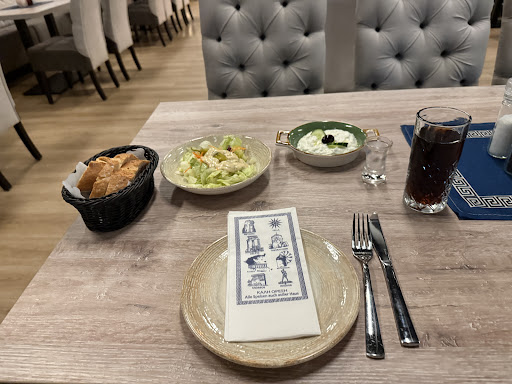 Read moreDas Restaurant ist nicht sehr groß und oft sehr gut besucht und daher ist es darin schnell sehr laut. Das wurde ja auch schon in einigen anderen Bewertungen erklärt, wenn man das weiß, kann man sich darauf einstellen. Insgesamt gefällt mir auch die Einrichtung nicht. Wir waren jetzt zum dritten Mal da, weil bei unserem Lieblingsgriechen alles ausgebucht war. Die ersten beiden Male war ich vom Essen schon nicht so überzeugt geschmacklich, aber nun war ich hier definitiv das letzte Mal. Mir hat mein überbackenes Gyros nicht geschmeckt. Ich habe nur einige Löffel Reis gegessen und den Käse vom Gyros gegessen. Das Gyrosfleisch war meiner Meinung nach viel zu dick geschnitten und sehr zäh. Das Gericht ist im Grunde fast komplett zurückgegangen. Ich habe mich nicht beschwert, nur zu dem jungen Mann gesagt, der unseren Tisch abgeräumt hat, dass es mir leider nicht geschmeckt hat. Der Leiter des Restaurants kam dann an unseren Tisch und fragte mit lauter Stimme, was hier das Problem sei. Ich habe ihm gesagt, dass mir das Gyros nicht geschmeckt hat und seine Antwort war, dass es allen anderen Gästen immer sehr gut schmeckt. Für mich klang das sehr vorwurfsvoll. Muss ich jetzt noch erklären, warum ich hier eine nicht so gute Bewertung abgebe? PS: meinen drei Begleitern hat ihr Essen - sie hatten andere Gerichte - jeweils ganz gut geschmeckt. Das muss man Ehrlichkeitshalber dazu sagen. Aber alle vier waren wir uns einig, dass der Umgang mit meiner „Nicht-Beschwerde“...