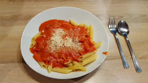 Read moreEin sehr nettes kleines Lokal im Marktplatzcenter, die Mitarbeiter sind sehr freundlich und die Einrichtung schlicht aber gemütlich und einladend. Hier gibt es verschiedene "Nudelmenüs" zu kaufen, man wählt sich eine Pastasorte, dazu eine Soße und einen "Belag" (also Parmesan, Kräuter etc.). Die normale Portion kostet 5€, die große 6€, möchte man seine Speisen dort verzehren wird ein Euro extra fällig, meiner Meinung nach sind die Preise völlig in Ordnung. Die von mir getestete Soße "DDR - Tomate" auf Penne mit Parmesan, schmeckte ausgezeichnet, frisch und sehr lecker. Auch wenn ich zunächst diesbezüglich meine Bedenken hatte, so wurde ich bin der großen Portion gut gesättigt, zudem waren die Sitzgelegenheiten wesentlich bequemer als gedacht ! Rundum, für alle auf dem Sprung, die schnell etwas günstiges und sehr leckeres to go brauchen, ist dieses Lokal ebenso etwas wie für alle die kurz einkehren und...