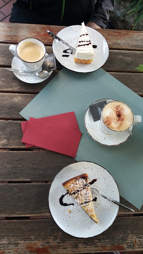 Read moreUnerfahrenes Personal. Langsam und obwohl das Lokal nicht mal sonderlich gut besucht war scheinbar völlig überfordert. Auf Anfrage ob der Kuchen oder die Sahne im Kuchen mit Gelatine ist, konnte keine qualifizierte Auskunft gegeben werden. Es wurde dann behauptet, es sei keine drin, jedoch konnte mir auch nicht gesagt werden, was stattdessen als Bindemittel verwendet wurde. Eine inhaltsstoffliste konnte ebenfalls nicht präsentiert werden. Oder es war schlicht Faulheit. Das Weinglas war staubig, mit Fingerabdrücken und kleinen Haaren. Der leicht fluffig angepriesen Brandtteig aus der Karte war hart, ungenießbar und wohl 5 Tage alt. Ebenfalls waren die Kaffeetassen schon leer, als die Speisen serviert wurden. Das Personal war sehr unaufmerksam. Enttäuschend. Einen Troststern, da die zwei am Tisch servierten Steine alias fluffige Windbeutel von der Rechnung storniert wurden. Die Ausssage es wäre alles täglich frisch zubereitet ist schlicht falsch. Grottiges Lokal. Inhaber reagiert außerdem mit frechen Kommentaren auf 1-Sterne Bewertungen, um bereits verärgerte Kundschaft zusätzlich zu...