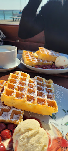 Read moreWir kommen seit Jahren ein- bis mehrmals nach Rerik um Abzuschalten und die Seele baumeln zu lassen. Dies funktioniert nur dort, wo man sich wohl, willkommen oder wie zuhause fühlt. Wir begegnen unseren Mitmenschen mit Respekt, Geduld und Entspanntheit, wir sind ja schließlich im Urlaub. Wie man in den Wald hineinruft, so schallt es heraus. Wir waren vor 4 Tagen auch da und nahmen die Situation komplett anders wahr. Die Bemühungen der Bedienungen trotz des Wetters und Coronaauflagen uns den Tag angenehm zu gestalten, haben wir als sehr professionell empfunden. Ach ja, das Essen und die Getränke....... Die Getränkekarte lässt kaum Wünsche übrig, für Sonderwünsche gibt es immer ein offenes Ohr. Die Waffelkarte macht jede Seele glücklich und die Fisch- und Fleischgerichte sind allesamt in ihrer Zusammenstellung etwas Besonderes. Innovativ, super lecker und immer wieder einen Besuch wert. Deshalb seit Jahren immer wieder gerne dort, nie enttäuscht, immer wieder und kommt der eine nicht mehr, kommen wir einmal mehr.
