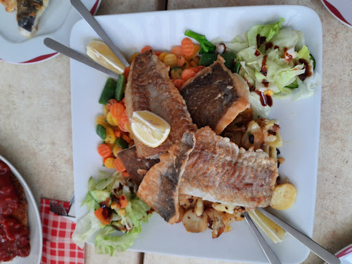 Read moreIch muss sagen, dass wir aufgrund der positiven Rezensionen auf das Restaurant aufmerksam wurden, als wir im Urlaub in Rerik waren. Leider war unser Aufenthalt nicht ganz so positiv... Ich hatte die Fischfiletplatte und war damit weitestgehend zufrieden. Allerdings hatte ich anstatt der Wedges Bratkartoffeln bestellt, welches leider nicht umgesetzt wurde. Da dachte ich noch, dass kann passieren, esse ich halt die Wedges. Der Fisch war dafür perfekt zubereitet!!👌 Meine Frau ist nicht so der Fischesser und hatte als Alternative den Burger. Und wurde furchtbar enttäuscht! Ein furztrockenes Burgerbrötchen, welches fast nicht mal zu schneiden war. Dieses wurde dann auf Nachfrage getauscht. Allerdings konnte auch das Pattie nicht wirklich überzeugen... Und der Salat war quer gemischt durchs Salatbuffet. Radieschen, Mais,... Na ja, jeder mag es ja anders.