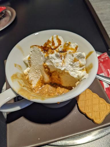 Read moreMeine To-Go bestellung in Eisdielen ist immer der Eiskaffee, aber ich wurde so dermaßen enttäuscht, dass dies eine Google Review erfordert. Der "Kaffee" wird anscheinend in Plastikflaschen aufbewahrt, was erstmal einen ziemlich minderwertigen Eindruck macht. Das Hauptproblem jedoch ist, dass dies nicht mal echter Kaffee zu sein scheint, sondern eine Art Kaffeesirup. Mir ist beim ersten Schluck am Strohalm die Galle wieder hoch gekommen und ich musste die fast 7 Euro in der Toilette versenken. Eis, Waffel und Sahne waren jedoch Ok-Gut. Ein weiterer Kritikpunkt ist der Verkäufer, der nicht mal anständiges Hallo und Tschüs Aussprechen kann, geschweige denn einem Danke, wie es sonst so üblich ist. Ich schwanke gerade wirklich ziemlich stark zwischen 1 oder 2 Sterne. Das Ambiente vermittelt ja eigentlich, dass irgendwann mal irgendjemand sich was bei dem Laden...