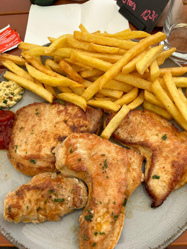 Über sympathischen aber überforderten Service lässt sich aber leicht hinwegsehen, wenn der kulinarische Teil einen überzeugt aber hier lag leider der Hund begraben... Ein "Grillteller", in Anführungszeichen weil das Fleisch eher wie aus der Pfanne gewirkt hat, für 20€ wie im beigefügten Bild muss einfach mehr können! Das bekommt zuhause jeder mit Aldi Kugelgrill mindestens genauso, eher besser hin. Drei Stücke verschiedene Sorten Fleisch sollten auch unterschiedlich zubereitet werden. Leider waren alle Stücke exakt gleich gebraten, gleich gewürzt und leider auch absolut identisch übergart! Leider waren sowohl Hähnchen, als auch Schwein und Rind nicht von bester Qualität und dann wirklich staubtrocken... Das ist kein Umgang mit Lebensmitteln, den ich von einem Restaurant erwarte! Das die Speckbohnen aus waren kann passieren, sollte dem Gast aber bitte früher als mit dem ankommenden Teller mitgeteilt werden. Immerhin wurde ein zusätzlich, leider nicht minder trockenes, Stück Hähnchen Fleisch beigelegt. Das war insgesamt trotzdem deutlich zu wenig und lädt nicht zum wiederkommen ein. Die Cordon Bleu im Gegenzug waren zwar sehr lieblos angerichtet, dafür aber lecker!