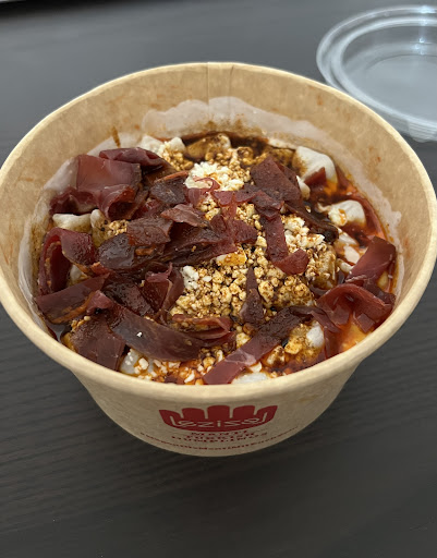 Wir waren schon ein paar Mal hier und haben die klassische Variante mit Rindfleisch bestellt, hat wirklich sehr gut geschmeckt! Wir haben das Essen zum mitnehmen bestellt, aber auch das Restaurant ist sehr modern eingerichtet und hat Platz für wenige Tische. Man kann zwischen zahlreichen verschiedenen Varianten wählen und sein eigenes Gericht mit Toppings usw. zusammenstellen, auch vegetarisch und vegan ist möglich. Das Baklava war leider jedes Mal schon ausverkauft... Nachdem man bestellt wird die eigene Portion frisch zubereitet, was 10 bis 15 Minuten dauern kann... Wir hätten gerne noch ein weiteres Mal hier gegessen und waren eine halbe Stunde nach der Öffnung da und leider machte niemand Anstalten zu kochen oder ähnliches! Der Laden war offen aber leer und die Küchengeräte noch ausgeschaltet, sehr schade! Wir mussten uns dann leider einen Döner holen, hätten aber natürlich lieber Manti gehabt......