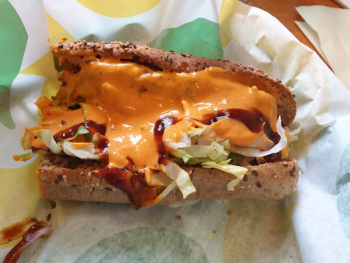 Vor dem Kino wollten wir noch schnell einen Sub essen. Wir haben uns sogar die App runtergeladen, für den Fall, dass diese dort benutzt werden kann (gibt tatsächlich gute Rabatte und preiswerte Angebote). Dort angekommen waren wir hellauf begeistert, weil auf der Anzeigentafel die eben benannte App mit den tollen Angeboten angepriesen wurde und wir damit bestätigt wurden, dass wir die Angebote nutzen können. Als wir dann mit dem Bestellen dran waren, wurden wir darauf hingewiesen, dass diese Filiale nicht mit der App arbeitet, obwohl dies an der Anzeigentafel offensichtlich so angegeben wird. Das war äußerst enttäuschend, aber damit hätte ich leben können. Wir wollten auf den Sub des Tages zurückgreifen, der am Eingang beschrieben wurde. Es war Sonntag, also stand außen an der Tür, dass es Chicken Breast zum Sonderpreis gibt. Als ich dieses bestellen wollte, haben die Mitarbeiter mir gesagt, dass es Sonntags kein Sub des Tages gibt. Ernsthaft? An der Eingangstür und in der Warteschlange sind wirklich ominös große Schilder, die genau dieses Angebot für jeden Wochentag anpreisen. Auch das wurde hingenommen. Was soll man auch sonst tun. Alle hatten Hunger....Tatsächlich haben wir dann Sandwiches bestellen können, die es dann auch wirklich gab. Diese wurden lieblos belegt. Nachdem wir uns dann an einen Tisch gesetzt hatten, der nicht mit einem "X" beschriftet war (Corona Abstandsregelungen), kam, nachdem wir alle uns hingesetzt hatten und die ersten Bissen verspeist hatten, auch schon ein Mitarbeiter und teilte mir mit, dass wir nicht drinnen essen dürfen. Warum, wollte er mir nicht sagen. Ich meinte, was wir stattdessen tun sollten, weil draußen genau 2 kleine Tische standen, die beide besetzt waren. Außerdem habe ich ihn darauf hingewiesen, dass ich momentan, wie er bestimmt gemerkt hat, mit Krücken unterwegs bin. Er wiederholte einfach nur seinen Satz, dass wir trotzdem nicht drinnen essen dürfen und sagte, wir sollen rausgehen. Wieso sind dann nicht alle Tische markiert bzw. wird einem irgendwann gesagt, dass man nicht vor Ort essen darf. Entschuldigung, aber jemandem mit Krücken zu sagen, er solle bitte draußen im Stehen essen, ist meiner Meinung nach etwas respektlos, wo wir ja sowieso bereits am Tisch saßen. Wir sind dann gezwungenermaßen aus der Filiale gegangen. Der Mitarbeiter war längst wieder verschwunden. Draußen haben es zwei Personen mitbekommen und haben uns freundlicherweise ihren Tisch überlassen. Dort haben wir dann mit leider gedrückter Stimmung unsere halbwegs leckeren Sandwiches (daher noch 2 Sterne) gegessen und sind dann ins Kino. Ich weiß nicht, ob das der Standard in dieser Filiale ist, aber ich bin wirklich maßlos enttäuscht. Sicherlich das letzte Mal, dass ich dort mein Geld...