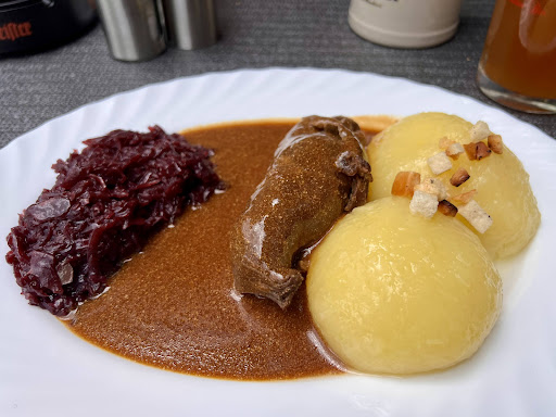 Read moreWaren spontan an einem Sonntag eingekehrt und saßen im Freien - Stuhlauflagen und warme Wolldecken inklusive 🥰. Das Essen - Thüringer Klöße mir Rouladen, gefüllt mit Gehacktes und ein Eisbecher mit Fichtensirup - war sehr gut, die Bedienung sehr freundlich und schnell. Da auch der Preis fair war, werden wir auch als "Einheimische" gerne wieder kommen 👍