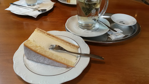 Read moreGuter Cappuccino u Milchkaffee schmeckte sehr gut.Der Kuchen war unschlagbar vom Geschmack kann man nur empfehlen. Wir hatten ein Stück Marzipantorte und ein Stück Nusstorte. In der Nusstorte war eine Buttercreme,verdammt cremig lag aber nicht schwer im Magen. Marzipantorte sehr cremig im Geschmack mit einer guten...