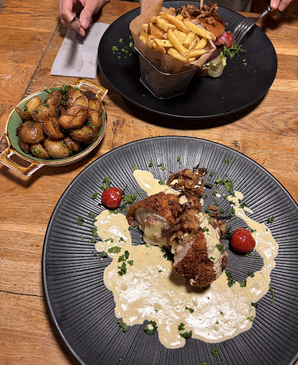 Read moreWenn man gemütlich und in Ruhe essen möchte, dann einen großen Bogen um diese Lokalität machen. Ambiente einer Kneipenscheune. Kinder brüllen und spielen im Speiseraum herum. Kellner räumen Tische und Stühle herum während des Essens. Und auch die sind nicht unbedingt dem Brüllen abgeneigt. Fehlendes Besteck musste man sich selbst organisieren. Essen war naja. Vorspeise: Lachs total versalzen. Spargel-Buratta nicht mehr vorhanden. Buratta war aus. Alternative Spargelsuppe. Allerdings war für mich kein Spargel-Geschmack erkennbar, da Spargel fehlte, total überwürzt und mit holziger Kresse durchzogen. Bei der Nachfrage ob es schmeckt, reklamiert und begründet. Wurde auch an den Koch weitergegeben und ich bekam einen Salat als Ersatz. Gleichzeitig die Begründung: ja stimmt, Spargelstücke fehlen, sollten laut Chef nicht in die Suppe. Wie bitte?? Geht's noch? Was hatte ich dann da für eine Suppe? Allerdings als ich mich plötzlich vor dem Koch persönlich rechtfertigen musste, weil ich das als Tütensuppe abgetan hätte, war schon extrem. Schließlich habe ich das nie gesagt, was auch meine Tischleute bestätigten. Koch: dann ist ja gut. Nichts gut, der Abend war definitiv hin. Die Hauptspeise kamen mit Verzögerung. Burger war okay, Schnitzel auch, allerdings die Soße dazu...was war das. Und DIE hatte tatsächlich den Anschein nach Tütensoße aufgepeppt. Die Schnitzelesser hatten übrigens danach den Restabend auf dem Klo verbracht. Somit die Einleitung zu den Sanitäranlagen. Sorry aber sowas ist echt eine Zumutung. Das eine WC lief über und stand im Wasser. Alles eingesaut. Mülleimer quoll über. Sowohl Herren als auch Damen-WC eine Zumutung. Ich sollte echt mal dabei bleiben und erst das Klo besuchen, bevor ich was bestelle. Sagt viel aus. Zum Schluss die Rechnung. Teilen der Rechnung war schon eine Herausforderung. Dabei wurde auch noch falsch abgerechnet, was uns aber zum Glück aufgefallen ist. Denn dem Kellner war es egal. Im Fazit fühlten wir uns dort mehr als in Willkommen und über den Leisten gezogen. Aber ok, uns ist die Lokalität auch zukünftig egal. Erste mal da gewesen und nie wieder....