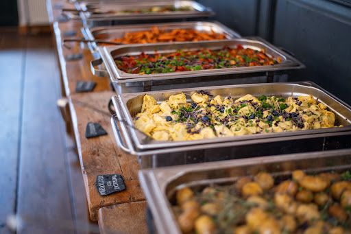 Essen: Wir hatten die Chance das Essen beim Probeessen vorab zu probieren. Für etwa 35€ pro Kopf konnte man fast das gesamte Repertoire von ihrer Buffetkarte (inkl. Wasser) probieren (Vor-, Haupt- und Nachspeise), sowie Candy-Bar, Limonaden-Bar und Eistruhe. Es war mehr als genug für alle da. Im Nachgang durfte jeder Teilnehmer Reste mitnehmen - Verpackungen wurden gestellt. Für mich ein riesiger Pluspunkt. Nicht nur, weil ich den nächsten Tag noch was zu essen hatte, sondern auch, weil so möglichst wenig weggeworfen werden musste. Unser Buffet bei der Hochzeit - genau so toll wie beim Probeessen. Wenn nicht sogar noch etwas leckerer. Es war auch sehr schön und ordentlich angerichtet - und auch wieder ausreichend von allem für alle dabei gewesen. Die Soßen super lecker und gut abgestimmt, das Fleisch zart und genau richtig - nichts zu salzig, nichts zu fad. Zusammengefasst, absolut lecker. Wir haben uns so viele Reste mitgenommen, wie wir Zuhause noch unterbringen konnten. Hätten wir einen eigenen Kühlkammer Zuhause, hätten wir alles ausgekratzt. Auch der Snack zum Sekt, nicht nur ein Hingucker, sondern auch ein sehr leckerer Snack zwischendurch. Es ging gut weg. Top-Empfehlung: Tortellini mit Sahnesoße, Hähnchen mit Pilz-Rahmsoße, Falafel-Bällchen, Ratatouille und der Lachs mit Dillsoße. Unser Kompliment an die Küche!