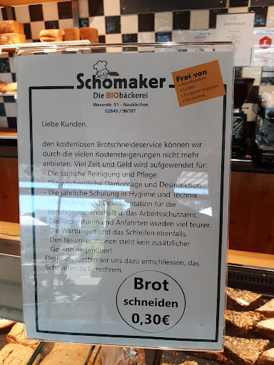 Read moreHerr Schomaker hat in Neukirchen die Gelegenheit genutzt, das Gebäude eines insolventen Geschäfts umzubauen und als Backstube und Verkaufsraum einzurichten. Abgefallen ist dabei auch der Raum für ein kleines Bistro, in dem ein gutes Frühstück und mittags kleine leckere Gerichte verspeist werden können. Die Bäckerei Schomaker steht im Übrigen über den Niederrhein hinaus für vorbildliche Qualität bei Vollkorn Backwaren. Schomaker versteht es, ein Roggenbrit in Vollkorn zu backen, das fast wie ein "normales" Brot aussieht und schmeckt, so dass auch Biomuffel nicht auf gesunde Ernährung verzichten müssen. Die Preise sind gehoben aber angemessen und solange die "Weißmehlbäcker" nicht begreifen, dass es nicht ausreicht, am Ende in den Brotteig eine handvoll Körner zu werfen. wird er weiter seinen Weg machen. Alles Gute auf dem Weg auch mit dem Fisker, seinem Hybrid Elektroauato, das kaum...