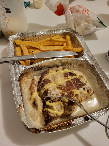 Das Brot/Pita schmeckt mir gut. Pizza super, denn Käse nicht von Anfang drauf bzw. zerlaufen, Teig dünn, Gewürze erst am Ende drauf. Döner OK, nix besonderes, Portion gut. Pommes schlecht. Hätte eigentlich mehr übrig lassen sollen. Kaum Salz dran, kein Paprikagewürz, von innen OK, von außen zu hart.