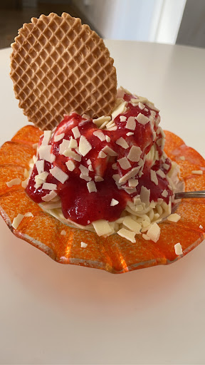 Schönes Café, immer gut besucht. Die Kugel Eis für 1,30 €, ne seltenheit in der heutigen Zeit. Sehr freundliches Personal, nehmen sich auch Zeit für Extra Wünsche. Mir gefällt auch die Selbstbedienung. Das Personal was heute schwer zu finden ist wird so entlastet und kann sich auf die Qualität der Bestellung Konzentrieren. Die Vielfalt an Eissorten und unterschiedlichen Bechern sind bei jedem Besuch eine Abwechslung. Meine Favoriten sind das Kirscheis und der Nussbecher. Ja, ich bin mittlerweile Stammkundin. Weil hier noch das ...