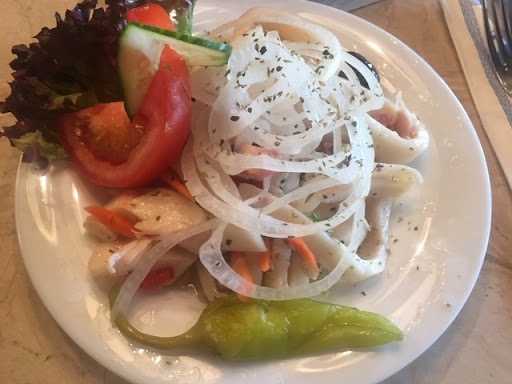 Entschädigt hat uns nun allerdings das Essen, denn es war sehr gut. Wir hatten Tzatziki zur Vorspeise so wie Calamari mit Reis und Salat. Die Portionen waren ok. Wir wurden satt. Der Preis war akzeptabel. Wir sind leider nur kurz geblieben. Gerne hätten wir noch eine Nachspeise gegessen und noch etwas getrunken, aber wir hatten so eiskalte Füße und Hände, da war es dann doch sehr ungemütlich.