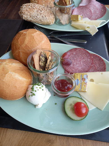 However, the service was soooooooooo slow, like we stay there for more than an hour to have two pieces of bread and some salami and cheese with cream cheese, a plate that should take them 2 minutes to put together. Just ordering took probably 30 minutes and whem we finally got the chance to order, the blond lady in the checkout was super rude and act very annoyed with life (we do speak German, before you think something different). It was actually a great class of non-efficiency, there was like 5 people working and they were (in total) helping one customer every 10 minutes 😂 and trust me, that lady is...