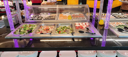 Die Buffet Auswahl ist sehr groß. Es gibt 4 - 5 sehr große Buffet Tische auf denen allerlei verschiedenste leckere asiatische Köstlichkeiten bereitgestellt werden. Darunter gibt es alles von Sushi, Reis, Nudeln, Fleisch, gebratenes Gemüse, Nachspeisen und und und...