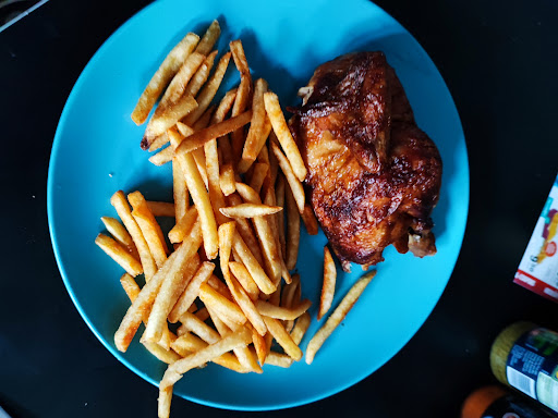 Die Pommes: Die waren furchtbar überwürzt. Dazu labbrig und haben geschmeckt als ob sie in der selben Fritteuse gemacht wurden, in der auch die Hähnchenflügel, und alles andere frittiert wird.