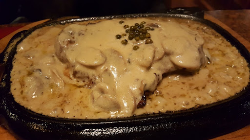 Tipp: nehmt die Spezialsauce, eine Mischung aus der Sizzling Sauce mit Weißwein und aus der Pfeffersauce. Das vereint das Beste aus zwei Welten!