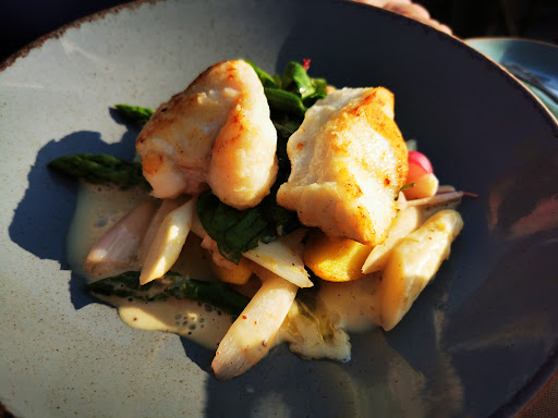 Read moreWir hatten die Hoffnung, in Seelscheid ein wirklich gutes Restaurant zu finden schon fast aufgegeben ,als uns ein Gutschein zum "Haus am Berg" führte . In einem alten Fachwerkhaus mit angrenzendem schönen Außenbereich durften wir Gastronomie vom Feinsten erleben 😀👍 Wir wurden sehr freundlich empfangen und hatten freie Platzwahl, Dank Reservierung. Da wir uns eine Flasche Wein gönnen wollten , hatte ich die Bitte, vorher probieren zu dürfen, was kein Problem war ,wir haben uns für einen trockenen weißen Spanier entschieden..sehr leckerer Tropfen..Als Vorspeise gab es Wildkräuter Salat mit Ziegenkäse und lauwarm marinierter Spargel, als Hauptgerichte: Select Fisch, da der aktuell mit Seeteufel ist, den ich nicht mag, habe ich mir alternativ Kabeljau gewünscht...die Küche zeigte sich sehr flexibel,was ich selten erlebt habe . Insgesamt rentiert sich hier das Konzept, saisonal , regionale Küche. Die Zutaten waren von hervorragender Qualität und sehr innovativ und lecker abgestimmt. Einzig in meinem Salat war etwas viel Sauerampfer ,der nicht so wirklich zu den karamelisierten Nüssen passen wollte . Zwischenzeitlich schaute der Service immer mal wieder nach uns, freundlich,ohne aufdringlich zu sein.. Auch die 2x Grüße aus der Küche waren sehr schmackhaft, . Ich hätte mir im Angebot noch Forelle gewünscht ,die es ja hier überall fangfrisch zu kaufen gibt . Auch wäre es schön gewesen,hätte der Koch sich einen Moment Zeit für uns genommen...es war nicht soviel los...Aber das sei jetzt nur mal angemerkt.. Es war ein wirklich schöner Abend,bei dem Ambiente, Essen und Service gestimmt haben. Wir kommen...