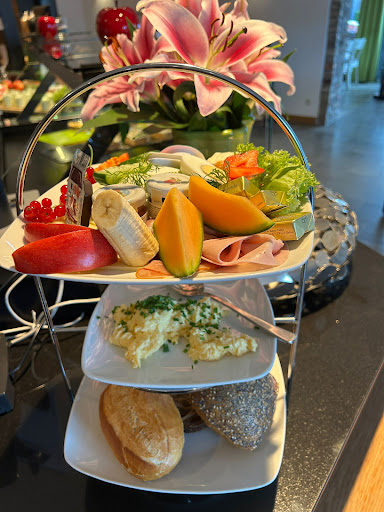 2 Stars for: Business hours are accurately displayed on Google, and there was staff working. We arrived at 9.30am for breakfast. Inside, out of appr. 15 tables, 3 were taken. Another 5 had "reserved" signs. We chose a free table, but had to switch shortly after we sat down, because of a swarm of wasps in that area. Eventually the server took our order. 1 glass of champagne and 2 Bauernfühstück. That's a slice of bread with 2 eggs sunny side up and a couple slices of fried bacon. The champagne was served within 10 minutes and was tasty. Then the server wasn't seen for the next 45 minutes. Meanwhile, 3 of the "reserved" tables had been taken, and food was served. We eventually left because we...