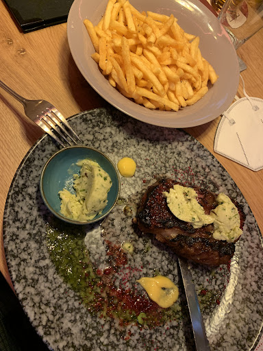 Read moreVery nice interior and pleasant outside dining, though needs a few more umbrellas when it rains...which it did. Great food. Fish, steaks, salads were all excellent. The service was a little wobbly - all the food for a group of 10 came at different times and they messed up a drinks order and at least one food order, but it all worked out. Not cheap - steak and pommes (extra cost) + 1 soft drink =€36 and they kept a €4 tip without asking. I would rate it lower but the food...