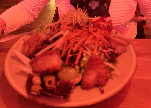Wir entschieden uns für den mediterranen Vorspeiseteller - war okay Pfifferlinge mit Gnocchi - ein vegetarisches Gericht mit durchaus gesundem Anstrich wird auf einem Ölteppich (okay, mit viel Omega3 wahrscheinlich) serviert, der durch das viele Fett den gesunden Anstrich verdirbt und auch geschmacklich alles überdeckt Hähnchen mit Pommes - zu trocken, kaum genießbar Salat mit Lachs - Salat war gut, der Lachs-Gurken Spieß ohne Geschmack Putenbrust - kreatives Gericht, geschmacklich gut - der Preis extrem hoch für diese Komposition Dorade - okay Steak - Garpunkt okay, etwas zu viele Röstaromen (jammern auf hohem Niveau) - je nach Interpretation auch angebrannt 2x Forelle - verbrannt, Fleisch klebte an der Haut, zu trocken um es zu essen. Zerfiel in alle Einzelteile beim zerlegen - Trockene Salzkartoffel dazu, war kaum zu schlucken ohne Butter oder alternative Sauce - die Mandelhaut konnte man nicht essen