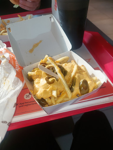 Read moreIm Restaurant waren nur zwei Tische besetzt, wobei die Gäste schon ihr Essen hatten. Unsere Bestellung war die einzige in Vorbereitung. Wir mussten 18 Minuten auf unsere Bestellung (2 Menüs, 2xEis) warten. Bestellung 473. Nach uns kamen ca. 15 Bestellungen am Drive-Inn, die vorgezogen wurden und drei Kunden im Lokal, die augenscheinlich dem Personal bekannt waren und wurden vor uns bedient. Als die Bestellung 503 ausgeliefert wurde, bekamen wir dann auch unser Essen. Die Burger waren heiß, die Pommes kalt, das Eis warm und schon fast flüssig. Bei der Laune (neutral, egal bis schlecht gelaunt) des Personal und der Wartezeit habe ich keine Lust noch zu reklamieren und wieder zu warten. Während unserem kompletten Aufenthaltes im Restaurant hört man ständig einen Mitarbeiter nur äußerst laut reden und mit den Kollegen privat quatschen, was der Geschwindigkeit des Arbeitens in keinster Weise hilft. Das Resultat des Besuches ist für uns, dass ich beim nächsten Mal lieber woanders mein Geld ausgebe und jetzt weiß, warum im Restaurant nix los ist. Mit der Mannschaft gewinnst Du keinen Pokal und...