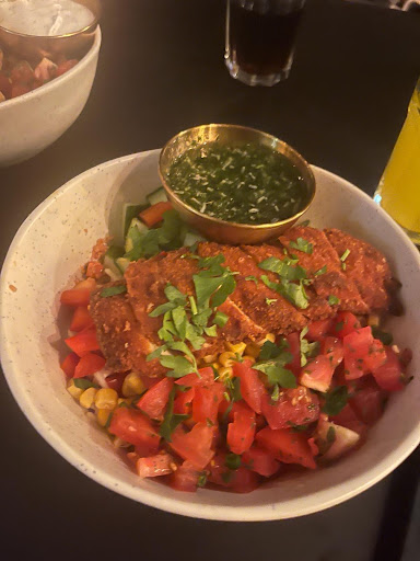 Anfangen möchte ich meine Bewertung mit dem Ambiente: Es war super. Die Deko vor Ort ist ansprechend und schön, viele Lichter und die Sitzgelegenheiten in den kleinen durchsichtigen Hütten sehr schick aufgemacht. Wir hatten zum Mitnehmen bestellt, daher kann ich das Ambiente nur sehend bewerten. Das Essen was wir bestellt hatten, war lecker und ansprechend zubereitet. Wir hatten für 4 Personen bestellt und hätten (dazu später mehr) knapp 60€ bezahlt. Wir wurden von einem jungen Mann mit Kopfhörern im Ohr bedient, der wohl noch nicht lange dort arbeitet. Bestellt hatten wir über einen Bestellzettel, an dem wir angeben mussten, was wir in welcher Menge bestellen wollten. Es wurde uns dann mitgeteilt, dass wir etwa 20 Minuten warten müssen - das wäre eine super Wartezeit gewesen. Man hat uns dann einen Pieper mitgegeben und wir haben gewartet, bis er piept und das Signal gibt, dass unser Essen fertig ist. Nach etwa 50 Minuten ohne weiteres Feedback bin ich dann Fragen gegangen, ob alles OK ist und habe gesagt, dass wir schon etwa eine Stunde warten, woraufhin die andere Mitarbeiterin Schockiert war und gefragt hatte wer uns bedient hat. Wir hatten das ganze dann aufgedeckt und es wurde sich entschuldigt, es wurde vergessen einzutragen dass wir mit einem Pieper warten - blöderweise gab es einen Teil unserer Bestellung (eine Bowl mit Couscous), der auf der Karte stand, noch nicht und stattdessen hatten wir eine andere Bowl bekommen, die man uns dann aber wegen der Wartezeit und dem Fehler geschenkt hatte.