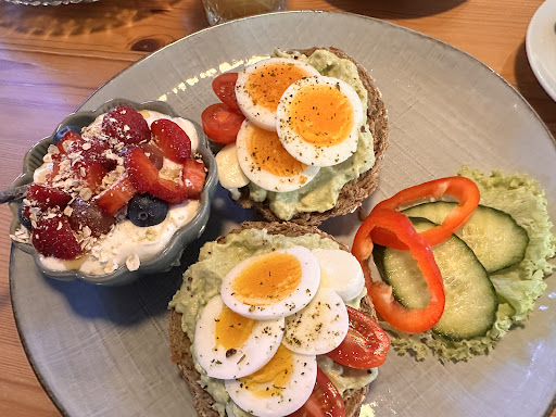 Read moreHaben hier spontan an einem Wochenende gefrühstückt. Das Cafe ist von außen sowie innen sehr einladend. Wir hatten Glück und gleich einen Platz für 3 Personen bekommen. Das Bestellprinzip war eine laminierte Karte auf der man seine Wünsche ankreuzen kann - mal was anderes, hat Spass gemacht! Auswahl gibt es genügend. Kleine Menüs oder man stellt sich alles einzeln zusammen. Wir hatten für unsere Tochter eine Etagere probiert, Joghurt, Brötchen mit Avocado, Pancakes und natürlich Cappuccino. Alles war toll angerichtet, sah frisch aus und hat auch so geschmeckt. Perfekt reife Avocados, tolles Rührei, warme (und vor allem nicht nur aufgebackene Brötchen). Und der Joghurt erst; eigentlich simpel, aber einen so toll geschmacklichen Joghurt gehabt. Die Bedienung war auch sehr freundlich und die Preise für Frische und Regionalität absolut angemessen! Außerdem ist die Atmosphäre sehr entspannt. Kommen...