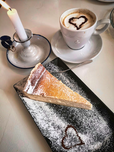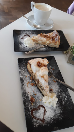 Read moreDu betrittst die Räumlichkeiten des Cafés und wirst augenblicklich verzaubert. So etwas hast du noch nicht erlebt. Nach Hause kommen beschreibt es am treffendsten. Das Ambiente wurde mit sehr viel Liebe zum Detail gestaltet und strahlt eine wohlige Gemütlichkeit aus. Es ist, als sitzt du im sehr geschmackvoll eingerichteten Esszimmer deiner Freunde. Und genauso wirst du von Karin und Chris willkommen geheißen; herzlich, freundlich, einladend. Sollte dich bei der großen und feinen Anzahl an Kuchen eine Entscheidungshemmung überkommen, mach’s dir ganz einfach: entspanne dich und bestelle die Kuchen-Trilogie! Du erhältst drei unterschiedliche Stückchen Kuchen und kannst dich „durchprobieren“. Und keine Sorge wegen deiner Figur. Die drei Stücke sind so portioniert, dass sie zusammen die Größe eines normalen Kuchenstücks ergeben würden. Alles ganz wunderbar! Wir kommen wieder!