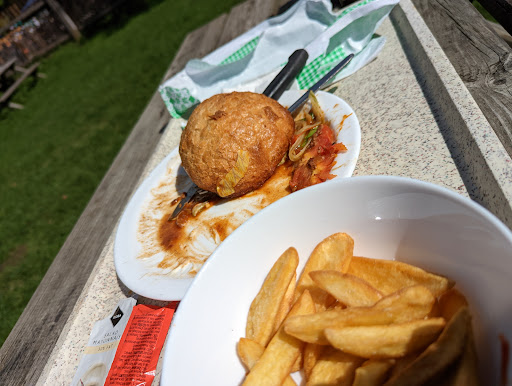 Angefangen beim Kartoffelsalat, der schmeckt wie aus dem Kübel, nach nichts, der Obazda ist gemischt mit dem billigsten Camenbert den man finden kann, leider auch nichts. Die Brezeln sind vertrocknet, das Fleisch ist geschmacklos und leider haben sie nicht einmal anständige Pommes hinbekommen. Es ist schwer zu beschreiben, aber das Essen schmeckt einfach nach trocken, nach Konservierungsstoffen und Emulgatoren, die Konsistenz ist eine Katastrophe.