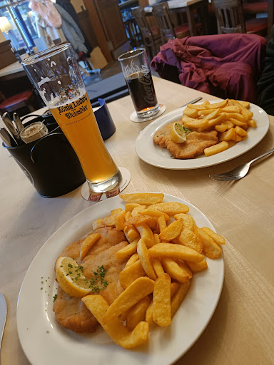Zoals het hoort bij zo’n plek, gingen we voor de schnitzel – en die stelde niet teleur. Gewoon lekker, precies wat je wil bij een tent als deze.
