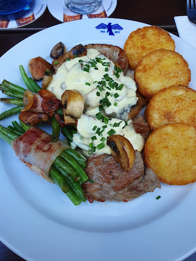 man kann dort sicherlich mal ein Bier trinken gehen . Wenn man aber vernünftig essen möchte ist man dort ganz sicher nicht gut aufgehoben . Personal ist sehr unaufmerksam und nicht wirklich freundlich Das Essen ist preislich auf dem Niveau eines Nobelrestaurants aber eben nur preislich . Das was dem Gast serviert wird sieht schon nicht gerade nett aus und geschmeckt hat es keinem . Wir waren schon mehrfach dort weil wir in der Nähe wohnen aber nach unserem letzten Besuch wo ich mit 5 Arbeitskollegen dort war , war die einheitliche Meinung : Sehr schlechtes Essen zum Kaviarpreis. Dazu kommt das die Portionen für den Preis wirklich sehr überschaubar waren . Die 3 Sterne gibt es auch nur weil die Bierknipe mal viel viel besser war . Das ist aber...