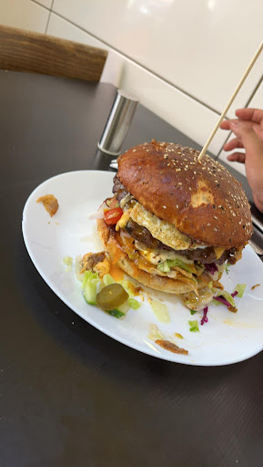 Das Saucegefüllte Köftepatty ist ein wahrer Höhepunkt dieses Burgers! Die Kombination aus saftigem Hackfleisch, die mit einer köstlichen Sauce gefüllt ist, welche durch das durchpicksen des Patty auf den Burger gegeben wird, verleiht dem Burger eine zusätzliche Geschmacksdimension. Bei jedem Bissen entdeckt man die zarte Textur des Hackfleischs und Dönerfleischs, begleitet von der herzhaften Sauce, die den Geschmack noch intensiviert.