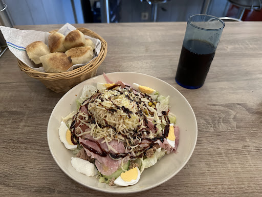 Die Calzone hatte einen sehr dicken Rand den man nicht essen konnte. In der wo der Thunfisch weggelassen werden sollte, war stattdessen Peperoni drin. Sie musste zerpflückt werden, weil zu scharf. Der Salat war braun an den Schnittstellen und das Dressing war sehr verwässert. Die Kräuterbutter eher geschmacklos.
