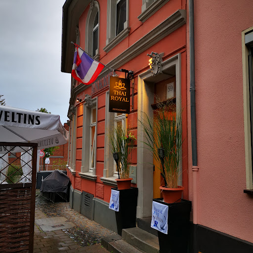 Das Thai Royal ist ein gemütliches, kleines Thai-Restaurant in einer der besseren Ecken Neuss' (ja, auch die gibt es). Die Bedienungen sind freundlich und schnell. Insgesamt mussten wir an einem Mittwoch Abend mit ca. 15 anderen Gästen kaum zwischen der Bestellung und den einzelnen Gängen warten. Obwohl wir bereits in Thailand waren, maßen wir uns nicht an, über den Grad an Authentizität urteilen zu können und so muss es hier eher um den Geschmack gehen. Wir haben beide Varianten des Thai-Eistees bestellt. Der mit Minze ist noch etwas süßer als der "originale" aber beide sind sehr lecker. Hier schon mal eine Empfehlung diese mal zu probieren. Ich habe zur Vorspeise eine Kokos-Lachs-Suppe gegessen, welche von vorne bis hinten (Temperatur, Geschmack, Cremigkeit) einfach perfekt war! Als Hauptgang gab es eine vegane Thai-Speise, deren Name mir leider entfallen ist, welche ich jedoch auch wegen des höchsten Schärfegrades (** = "Thai scharf") gewählt hatte. Ich weiß nicht, ob es nur an mir lag und ich durch die chinesische Sichuan-Küche schon andere Kaliber gewohnt bin, aber ich würde das Gericht lediglich als leicht scharf beschreiben. Dafür kamen hierbei umso mehr die feinen Aromen von Koreaner und Lemonengras zur Geltung. Ein fruchtig-scharfes Feuerwerk im Mund. Ich möchte sagen: Lassen Sie sich nicht von der Schärfeskala von dem ein oder anderen Geschmackserlebnis abhalten und wagen Sie es! Alles in allem ein durchaus lohnenswerter Abend zu einem ganz angemessenen Preis! Warum aber keine fünf Sterne? – Abzüge gab es für die Toiletten, welche nicht ganz so sauber waren, wie ich es mir gewünscht hätte, sowie für das Zuviel an Salz in meinem Hauptgericht. Ich würde gerne 4,5 Sterne geben, wenn dies möglich wäre. So vergebe ich vier und wir kommen nochmal wieder, für eine...