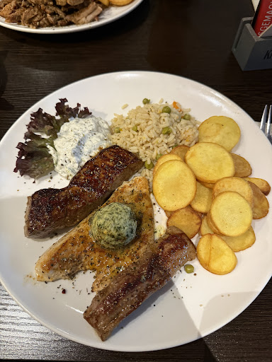 Wir waren die ersten Gäste im Restaurant, die Bestellung wurde relativ schnell aufgenommen, unsere Bedienungen waren freundlich. Allerdings rechtfertigen die Preise nicht die Qualität der Speisen. Das Schweinefilet war nicht gewürzt, ein gab stinknormalen Reis, kein Tomatenreis wie es beim Griechen üblich ist, das Gyros war einfach sehr salzig und hat scheinbar davon zu viel abbekommen. Einzig die Kartoffelchips waren gut und mal was anderes als die üblichen Pommes. Die Größe Portion vom Hauptgericht an sich war ok. Das kleine Saganaki vorweg war lecker aber war für diese Größe mit 7,50 € einfach viel zu teuer. Ebenfalls die kleine Spezi für sage und schreibe 4,00 €! Schade, wir kommen nicht...