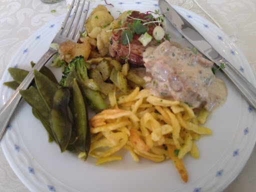 Read moreVorweg, wir waren vor ca. 3 Jahren – langes Pfingstwochenende – da! Hmmm schwierig. Also Fakt ist, der Name “Alte Schule“ ist hier Programm. Schöne Details, bewusst Arrangiert und penibel in Szene gesetzt – kurz um, man hat viel zu schauen, schönes zu entdecken und bei den einen oder anderen Accessoires, z.B. Schaukästen für Schmetterlinge etc., versetzte ich mich auch mal kurz in die alte Zeit zurück. Das Konzept geht dann bei den Speisen weiter, z.B. Buchstabensuppe etc. pp. Aber genau hier waren wir uns unschlüssig und sind uns dann einig geworden, dass wir uns die Location gern nochmal ansehen würden und evtl. ein Kaffee schlürfen und dann PUNKT. Denn das Preis-Leistungsverhältnis??? Na ja, das ist nicht super. Es hat zwar vom Würzen her geschmeckt aber hey, ich hatte wohl 4 oder 6 Stangen Spargel lauwarm, dann waren da Bratkartoffeln bei – nun ja – eher gekochte Kartoffelscheiben mal eben kurz in Butter geschwenkt, labbrig und auch nur lau dann war noch was anderes dabei Fisch oder Fleisch ich weiß es nicht mehr. Gewartet, auf dieses überschaubare u. lauwarme Essen haben wir ca. 52 Minuten gewartet und hat wohl ca. 12 oder 13 Euro gekostet. Der “Italienische Salat“ meiner Freundin war gerade mal so groß wie ein normaler Kuchenteller mit einer ganz normalen Balsamico-Soße und der hat wohl 8 Euro und paar zerquetschte gekostet – ich darf gar nicht an die Salatplatte bei unseren Italiener oder Griechen denken für 6,80 Euro – nicht zu vergleichen…. Fazit: Interessante Location und das war‘s – ergo, 2 Sterne vollkommen...