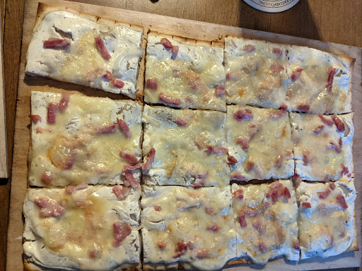 Read moreWaren heute im neuen Backblech-2. Wir warteten eine geraume Zeit, bis wir bedient wurden. Fast 25 Minuten bis unser Getränk kam und warteten knapp eineinhalb Stunden für einen Flammkuchen, oh ich korrigiere, Flammküchelchen und einen Salat. Chefin entschuldigte sich für die lange Wartezeit. Begründet wurde dies, dass sie heute Abend überrannt wurden. Die wenigen Tische draußen waren alle reserviert. Heißt, man kann sich etwas drauf einstellen. Zum Flammküchlein, ein mediterraner, mit zwei Scheiben Zucchini und einem Esslöffel gewürfelten Paprika. Ich fragte nach einem veganen Flammkuchen, oder ob es möglich sei, nur ganz wenig Schmand drauf zu machen. Nein, dies wäre zu viel Aufwand, wegen dem hohen Betrieb!!! Also zum "alten" Backblech absolut nicht vergleichbar. Die vielen leckeren Flammkuchen, tollen Salat mit feinem Dressing. Und, die Frau meisterte damals alles allein!! Das flutschte einfach. Niemals musste man, schon gar nicht so lange, auf Essen (und Getränke) warten. Wir werden dort nicht mehr hingehen, es auch nicht weiter empfehlen können. Die Preisleistung stimmt überhaupt nicht....