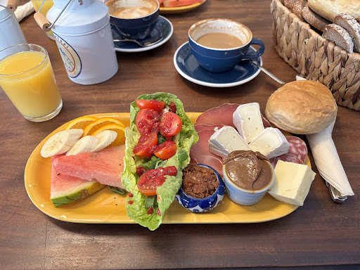 Zum Frühstück hatte ich das Le Maréchal, mit käselastiger Auswahl, Brotkorb mit Aufbackbaguette, lauwarmen O-Saft, dazu ein Cappuccino. Die Zusammenstellung des Tellers finde ich für ein Frühstück unpassend. Der Hartkäse, Parmesanähnlich passt nicht zu Brot,genauso die Salatgarnitur. Fürs Frühstück lieber ohne so ein intensives Dressing. Die Obstbeilage-zwei Bananen- und zwei Orangenscheiben, OK, aber naja... Der Cappuccino war durchschnittlich.