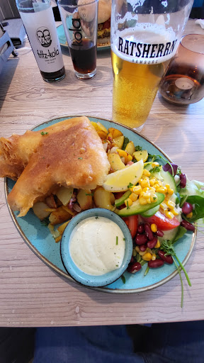 Die Portionen - Weltklasse. Für 16,90 EUR hatten wir auf den ersten Blick verdammt viel drauf 👍🏼 Die Bratkartoffeln meine Freundes waren kletischig und haben nur noch Fett geschmeckt. Sein Fisch - sehr lecker. Meine Kartoffelecken waren sehr lecker, leider waren die ertränkt in Sour Cream und waren dadurch sehr matschig. Mein Backfisch glich eher gebackenem , ausschließlich fettig schmeckendem Teig mit ein wenig Fisch - enttäuschend. Der Salat war auch nicht frisch und lag zum Teil in einem Fettbad.