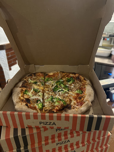 Read moreKleiner netter Lieferservice. Man kann zuschauen wie jede Pizza frisch zubereitet wird. Sehr schön finde ich hier, dass die Pizza noch im Steinofen gebacken wird. Es sind auch einige Stühle vorhanden, sodass man auch vor Ort essen kann. Es ist aber ein wenig eng und nach einiger Zeit wird es auch ziemlich warm. Geschmacklich fanden wir die Pizza mittelmäßig. Insgesamt war sie für unseren Geschmack viel zu würzig und zu salzig. Ich kann jetzt aber nicht sagen ob der Käse zu kräftig ist oder ob es die Soße ist. Vielleicht eine Mischung aus beiden. Die Pizza ist gut belegt und hat genau die richtige Größe zum satt werden. Der Inhaber ist sehr, sehr freundlich. Ich tendiere zu dreieinhalb Sternen kann hier aber leider technisch bedingt nur drei geben. Für vier Sterne hat es aber leider nicht ganz gereicht.