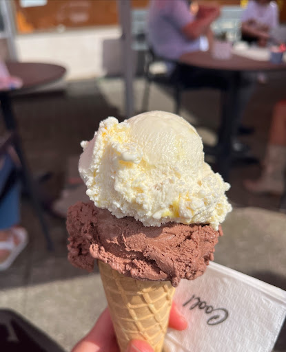Ich hatte Schokolade und eine weitere Sorte (die ich geschmacklich nicht vergleichen kann, da ich sie sonst noch nirgendwo gegessen habe), die war allerdings gut. Beim Schokoladeneis war ich leider nicht ganz überzeugt: Es war zwar cremig und nicht zu süß (was mir grundsätzlich gefällt), aber geschmacklich fehlte mir die Intensität, für mich persönlich war es viel zu mild, es hat überhaupt nicht “schokoladig” geschmeckt. Was ich hingegen wirklich klasse fand: Die Waffel! Knusprig, geschmackvoll und möglicherweise sogar selbst gemacht? Jedenfalls ein echtes Highlight.