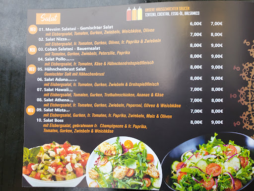 Positiv ist, dass der Laden wirklich sauber ist und das Speisenangebot sehr groß (vielleicht zu groß) ist. Ich habe nur Pommes mit Mayo gegessen und die Pommes waren gut, abgesehen von dem Pommes Gewürz, das einen schlechten Nachgeschmack hatte, als ob es alt wäre. Ich empfehle, nur Salz zu nehmen, um den Geschmack der Pommes zu erhalten, da sie gut gegart waren. Allerdings war die Mayo aus der Discounter-Flasche für 99 Cent nicht angemessen. Hier hätte ich mir gerne eine Premium-Sauce für die teuren 3,50 Euro gewünscht. Es ist möglich, Mayo selbst zu machen und sie zweimal täglich frisch aufzuschlagen, was auch geschmacklich besser wäre. Trotzdem werde ich wiederkommen und andere Gerichte ausprobieren. Wenn ihr einen Döner kauft dann schreibt es mit auf alle Gerichte der Karte Als Türke ist man doch Stolz einen guten Döner zu servieren weil Dreh Spieß immer schlechte Qualität heist beim Gesetzgeber ................... Bis Bald...