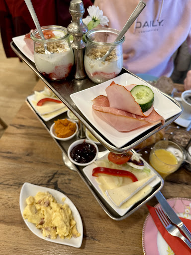 Wir waren gestern mit einer kleinen Gruppe zum frühstücken im Café Wolke 7. Leider wurde uns am Telefon nicht gesagt, dass es „nur“ zwei Frühstücksoptionen gibt. Zum einen das Muttertagsfrühstück für stolze 26,80€ und zum anderen das Verwöhnfrühstück für 19,80€ - beides exkl. Heißgetränk. Die Plätze waren zeitlich begrenzt reserviert. 15 Minuten später als reserviert, wurden wir einem Durchgangstisch zugewiesen, welcher von den Gästen zuvor abgelehnt wurde. Das Frühstück wurde uns dann nach über einer Stunde Wartezeit am Tisch endlich serviert. Optisch wurde alles sehr ansehnlich hergerichtet. Die Dipauswahl konnte von den Servicekräften nicht näher benannt werden. Wir wurden leider auch nicht gefragt ob wir nochmals Getränke nachbestellen möchten. Die Geräuschkulisse war schon extrem; Dies war aber dem entsprechenden Andrang wegen Muttertag geschuldet. Von dem Service kam der Hinweis es könne von allem nachbestellt werden, dies taten wir einmal und baten um Brötchen, woraufhin wir 2 Stück für 6 Erwachsene erhalten haben. Da wir nun bereits 13 Uhr hatten und aufgrund der langen Wartezeit der Hunger bereits nicht mehr so vorhanden war bestellten wir nichts weiter nach, jedoch kam uns das Servierte im Vergleich zum Preis deutlich zu wenig vor. Wir haben tatsächlich alles aufessen können, was uns bereit gestellt wurde, wobei zwei Personen von uns jeweils nur ein halbes Brötchen gegessen hatten… Wir unterhielten uns mit einigen Gästen um unseren Tisch herum, welche ähnliche Ansichten teilten. Beim Bezahlen wurde dies von uns auch angesprochen…
